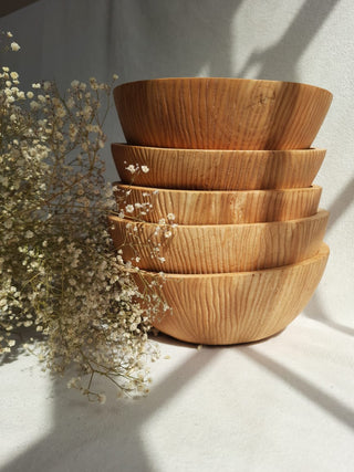 The products are made from the very beautiful tan wood of the jacaranda.